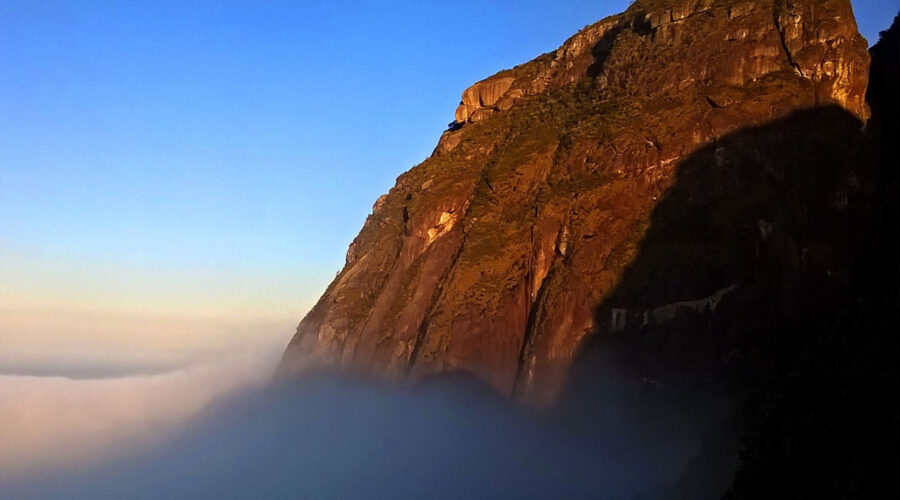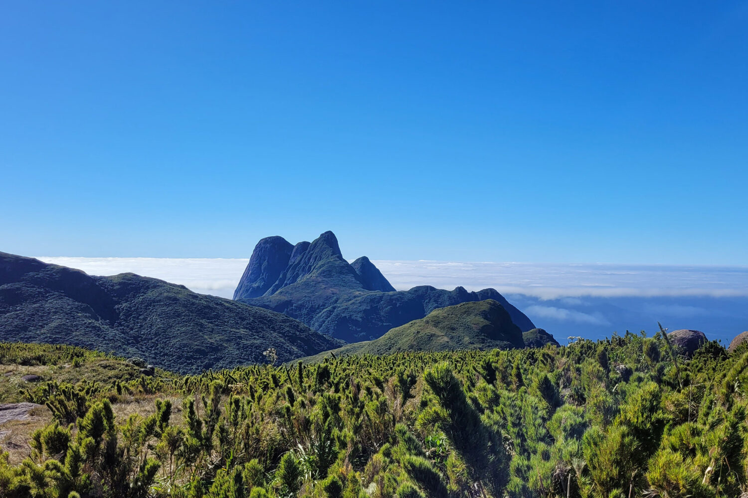 A caminhada segue pela crista que conecta as duas Montanhas, com trechos técnicos e subidas exigentes. Logo chegamos ao Tucum, com 1.733 metros, um dos mirantes naturais mais impressionantes da região. Lá do alto, é possível avistar toda a grandiosidade da serra, o traçado do vale e, com sorte, até o litoral ao fundo.
